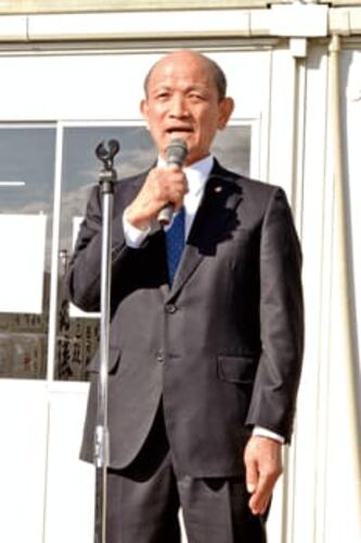 3選に向けて決意を述べる日裏氏 2月4日告示、9日投開票の印南町長選に出馬を表明している、現職で3選をめざす日裏勝己氏(68)=皆瀬川=の後援会事務所開きが18日、JR印南駅南方約350メートルの空き地で行い、日裏氏は支持者ら500人(主催…