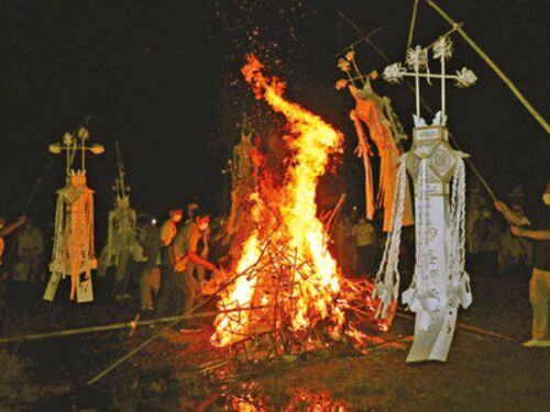 切り子灯ろうを焼く 由良町門前の開山・興国寺(山川宗玄住職)で15日、うら盆の伝統行事「灯ろう焼き」が行われた。750年以上続く伝統行事で、、昨年に続き新型コロナウイルスの影響で土傭担ぎや松明踊りをとりやめ、寺の大灯ろうや檀家が持参した切子…