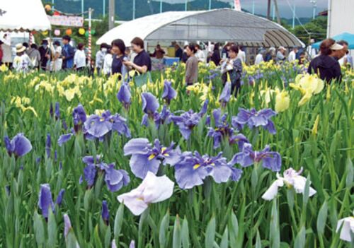 色とりどりに咲き誇る花しょうぶ 移転リニューアル3年目を迎えた御坊市野口の「とびやま花しょうぶ園」(浅井了二園長)で25日、第7回「花しょうぶまつり」が行われ、日高地方をはじめ県内外から家族連れや女性グループらがひっきりなしに訪れ、紫色や黄…