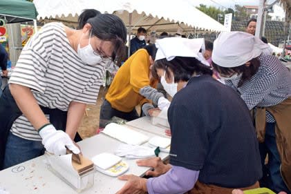 なた豆茶や「なたまめあいす」、寿司、どらやき、焼き鳥等の産品販売ふれあいテント市や軽トラ市、フランクフルトや綿菓子、うどん、花市、ご当地コロッケ日本一決定戦で特別賞を受けた「さばコロッケ」、ベトナムコーヒーやバザー、木工作品づくりや各種体験など各種コーナーでにぎわい、射的や輪投げなどゲームコーナーやスライダー型エアー大型遊具は人気で子どもたちが殺到。